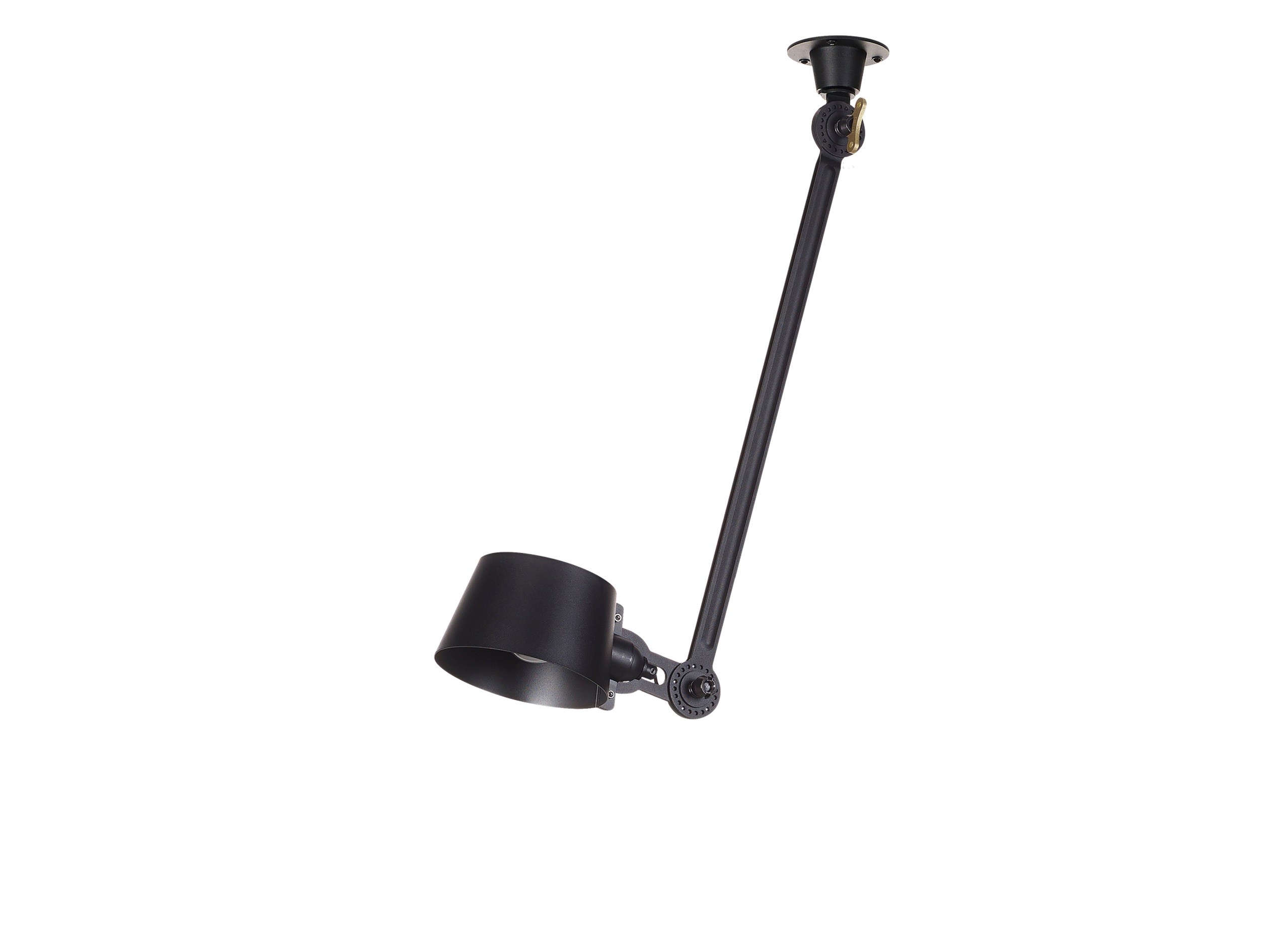 De Bolt collectie van Tonone draait om de meegeleverde messing vleugelschroef die dient als verstelsleutel van de lampscharnieren bij de bovenste arm en de kap. De vorm volgt de functie en dit is door de zichtbare mechaniek hier zelfs een esthetisch statement geworden. Met de vleugelmoer verstelt u zelf eenvoudig steeds opnieuw de richting van het onderstel en de kap om optimaal licht of een bijzonder visueel effect te krijgen. Daarnaast maakt het systeem de lampen tot stoere industriële pareltjes in huis.