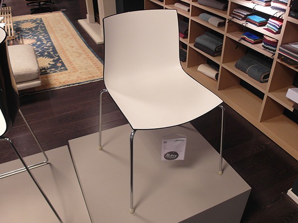 De Arper Catifa 46 eetkamerstoel heeft tweekleuren Polypropylene, P0209 bianco-nero, onderstel chroom.